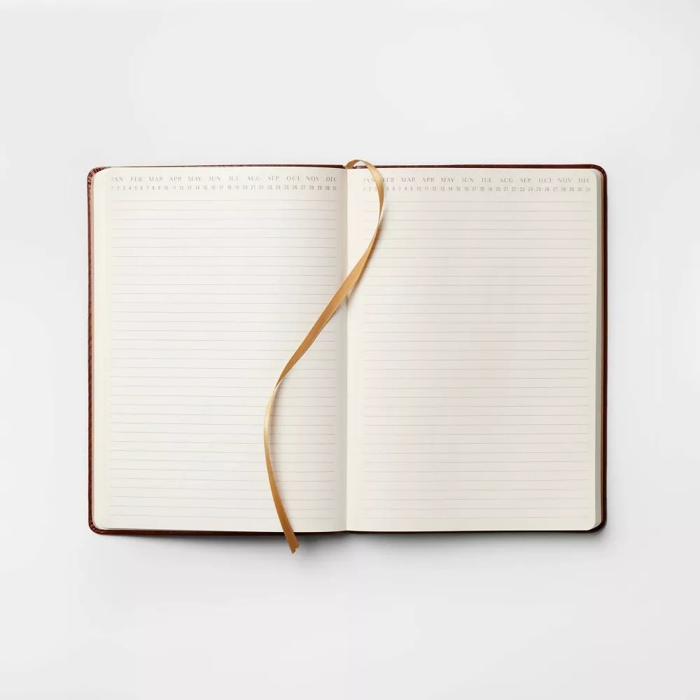 Add beautiful blooms to your assortment of school and office supplies with this College-Ruled Journal. This hardcover notebook has 240 double-sided, ruled pages for taking notes, making lists and more, along with a light pink ribbon bookmark and matching elastic band. Your daily note-taking is given a lively pop of color by the vibrant floral-print cover on a cream-colored background, which is elevated by the gold glitter heading that says “Notebook” on the front. Plus, the compact size makes it easy to carry around.