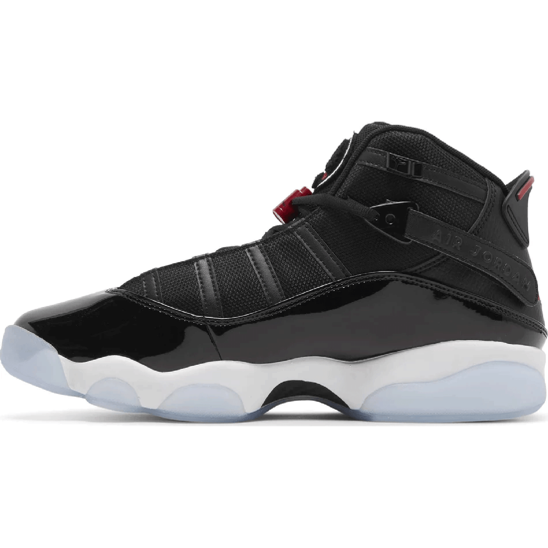 Jordan 6 Rings 'Black Gym Red' A classic Jumpman color scheme collides with design elements...