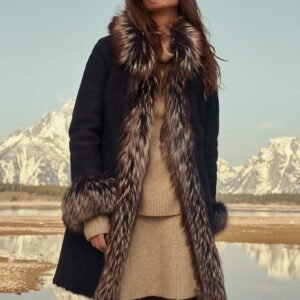 A 3/4-length Merino sheepskin coat exuding pure elegance and warmth Trimmed with sophisticated fox fur Designed for warmth in the