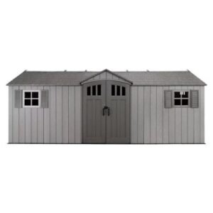 Lifetime storage shed with heavy-duty construction—no maintenance or repainting required Interior stays dry, bright and pest free Built-in shelving and