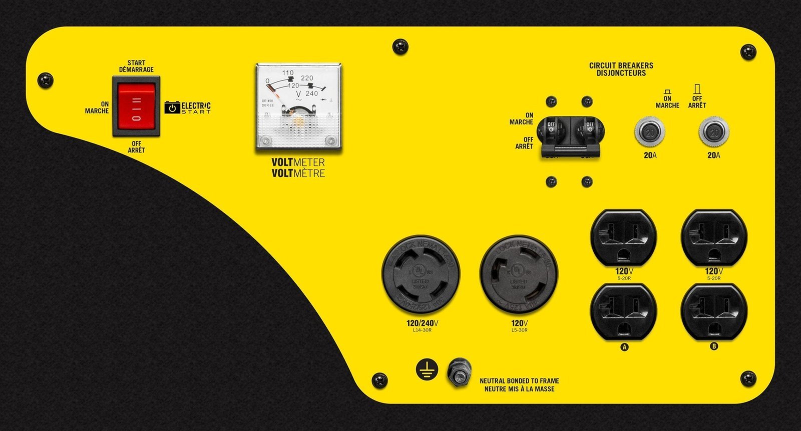 Plenty of outlets are available, including 120/240V 30A (L14-30R) and 120V 30A (L5-30R) locking outlets and four 120V 20A household outlets (5-20R).