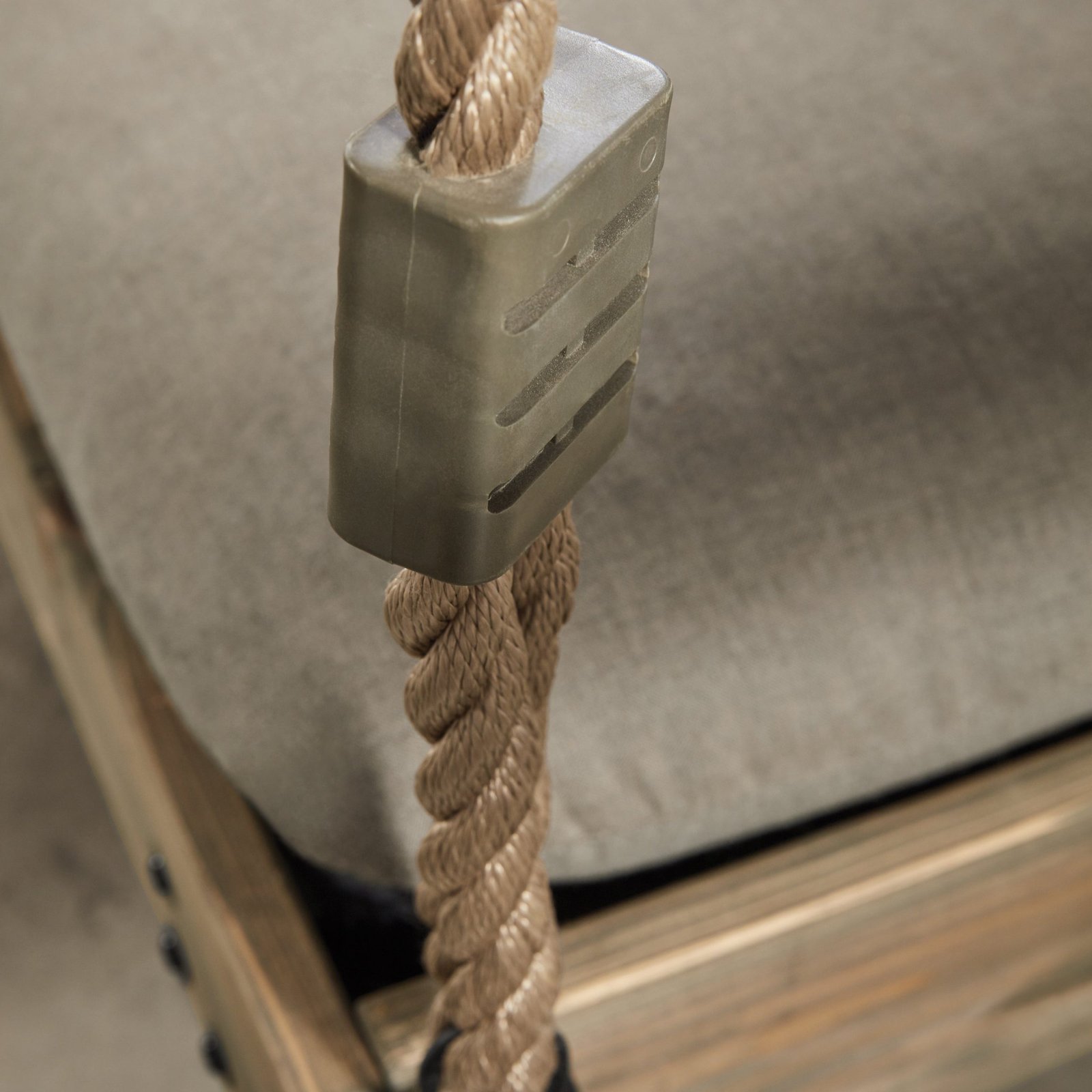 Swing into relaxation with the new Claremont Lounger from Backyard Discovery and take comfort to the next level. Newly designed with more seating options, the multi-position seat converts to a daybed or two, opposite facing chaise lounges. The comfy, overstuffed cushions are covered with Sunbrella® fabric for beauty and durability. The rustic barnwood stain with black hardware accents looks beautiful in any backyard. The graceful, gentle sway makes the Backyard Discovery Claremont Lounger the perfect solution for any backyard enthusiast.