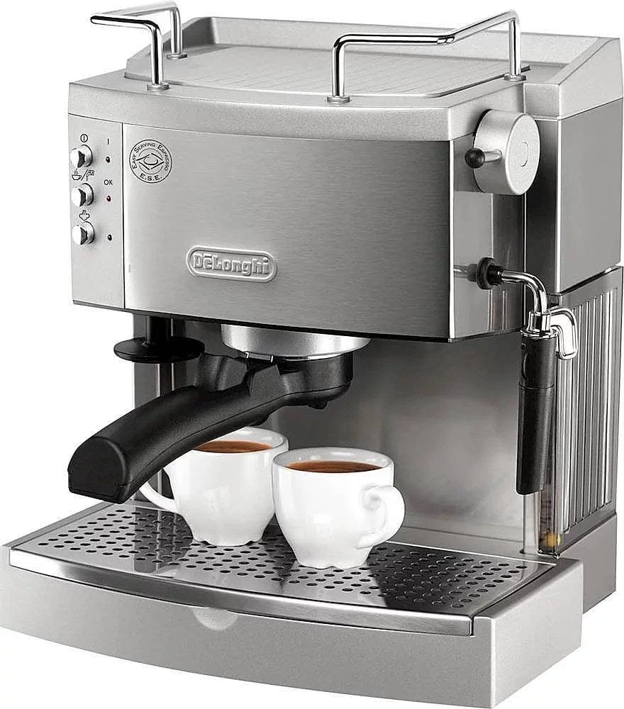 Craft custom drinks with this De’Longhi espresso and cappuccino machine. Its dual filter holder can accommodate ground coffee or pods, and the two thermostats control water and steam pressure separately to achieve the ideal temperature for your beverage. This De’Longhi espresso and cappuccino machine’s self-priming operation lets you use it immediately without any preparation.