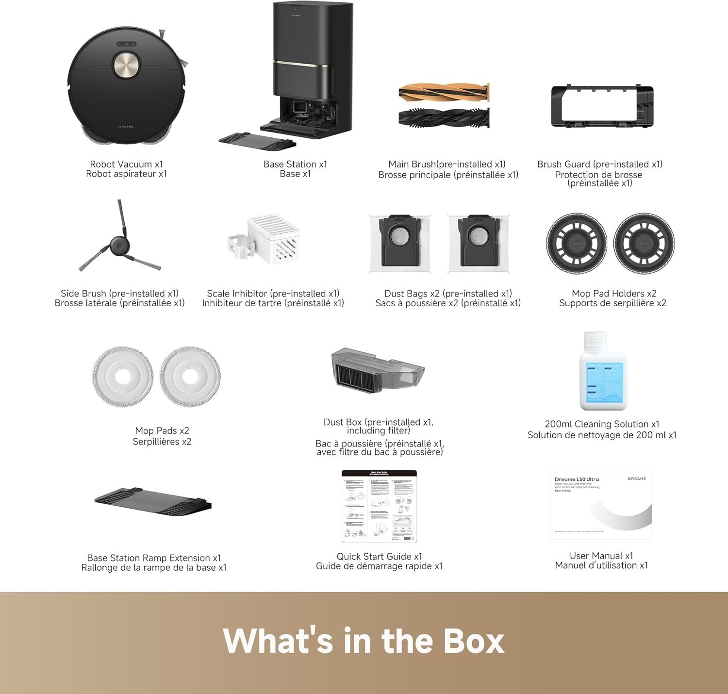 - All-in-One PowerDock Convenience: Benefit from the dock’s effortless maintenance. Skip manual dust bin emptying for up to 100 days, rinsing mop pads with hot water from all the dirt, or drying them. L50 Ultra also refills solution and water for mopping and auto-washes its board, creating a hands-free post-cleaning routine.