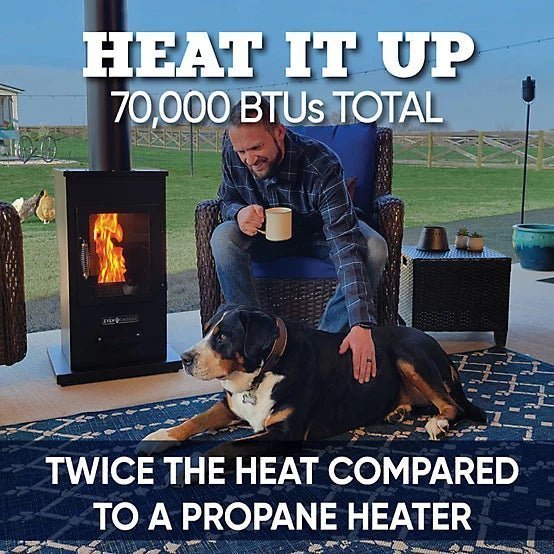 Upgrade your outdoor heating experience with the Even Embers 70,000 BTU Pellet-Fueled Patio Heater-a powerful, efficient, and cost-effective alternative to traditional propane heaters. Designed to provide twice the heat compared to propane models, this heater ensures optimal warmth for your backyard, patio, tailgate, or any outdoor gathering.
