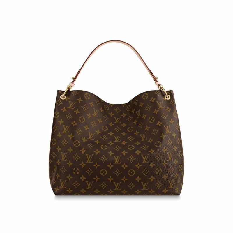 The Graceful MM hobo in classic Monogram canvas is an extra-roomy yet lightweight bag to carry every day. Natural cowhide leather detailing and shiny golden hardware adds a refined, signature touch. The body-friendly design combines with a supple, flat handle for stylish and comfortable over-the-shoulder wear. The magnetic closure and zipped inside pocket keep belongings secure.