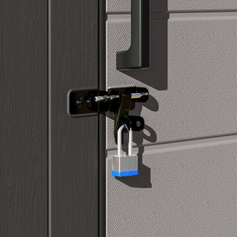 • Pad-lockable side door access to keep contents safe and secure (padlock not included)