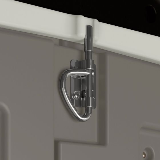 This slim Tremont® 8 ft. x 4 ft. Storage Shed by Suncast® is the perfect solution for storing all your lawn and gardening items when yard space is limited. The compact footprint design fits nicely along a house or garage, yet still has plenty of space for storing long handled tools, ladders, patio umbrellas and gardening supplies. In addition, the included standard corner shelves allow more options for organization. Two skylights along with the large door windows provide natural light. Sturdy double doors allow you to access your items easily and is equipped with pad-lockable metal handles for added security (lock not included). Constructed of metal reinforced, multi-wall resin panels, this sturdy shed is weather resistant and built to last.