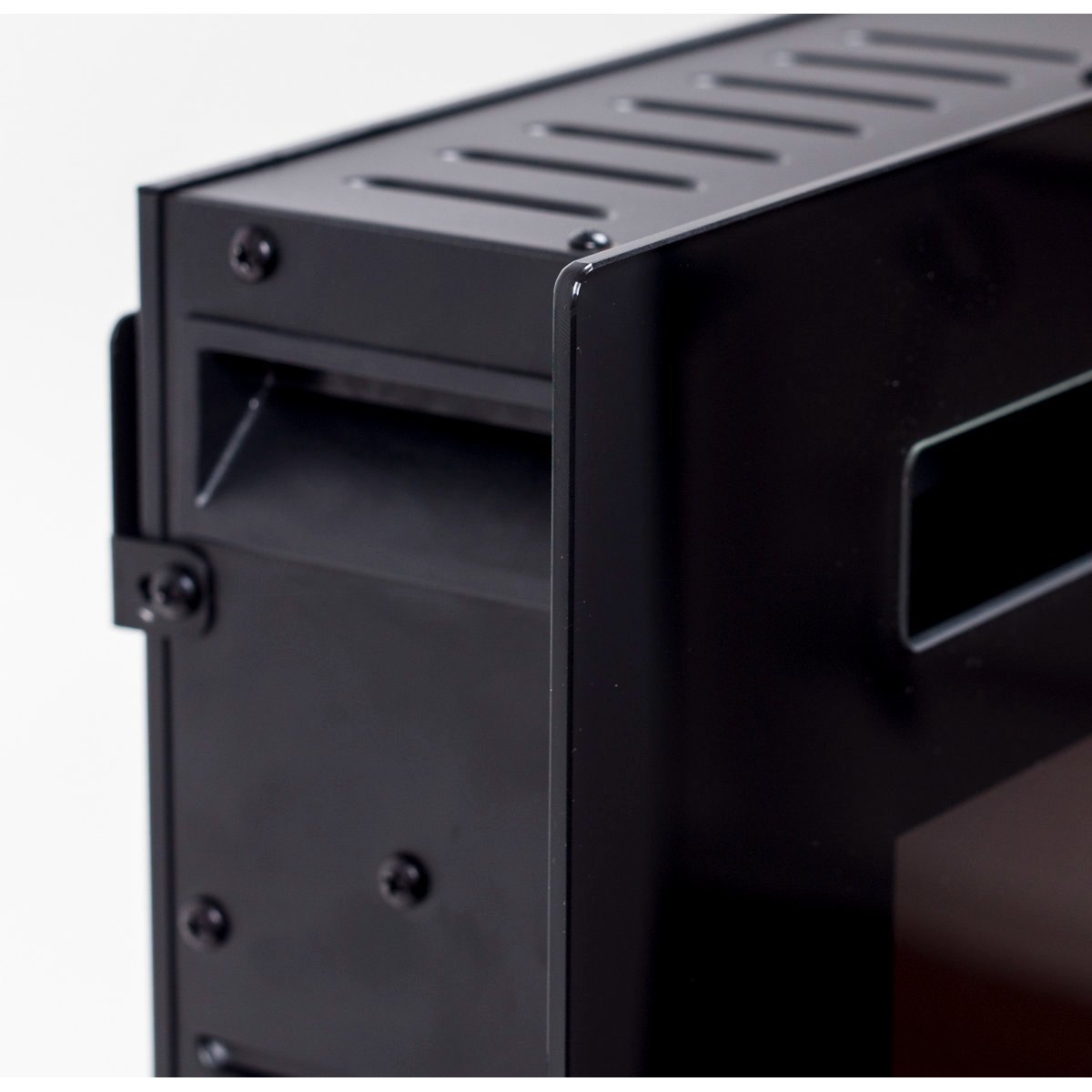 A slim frame that features a large fireplace viewing area with bright LED flames.