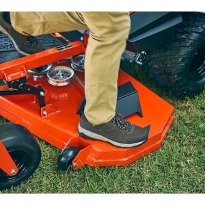 Durable Accel Deep Mower Decks are made from 12-gauge steel with double captured mower wheels