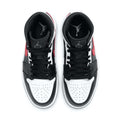 The Air Jordan 1 Mid Black Chile Red is a bold and dynamic iteration of the iconic silhouette. With a sleek black leather upper, the shoe is accented by vibrant Chile Red detailing on the Swoosh, collar, and outsole, adding a striking contrast.