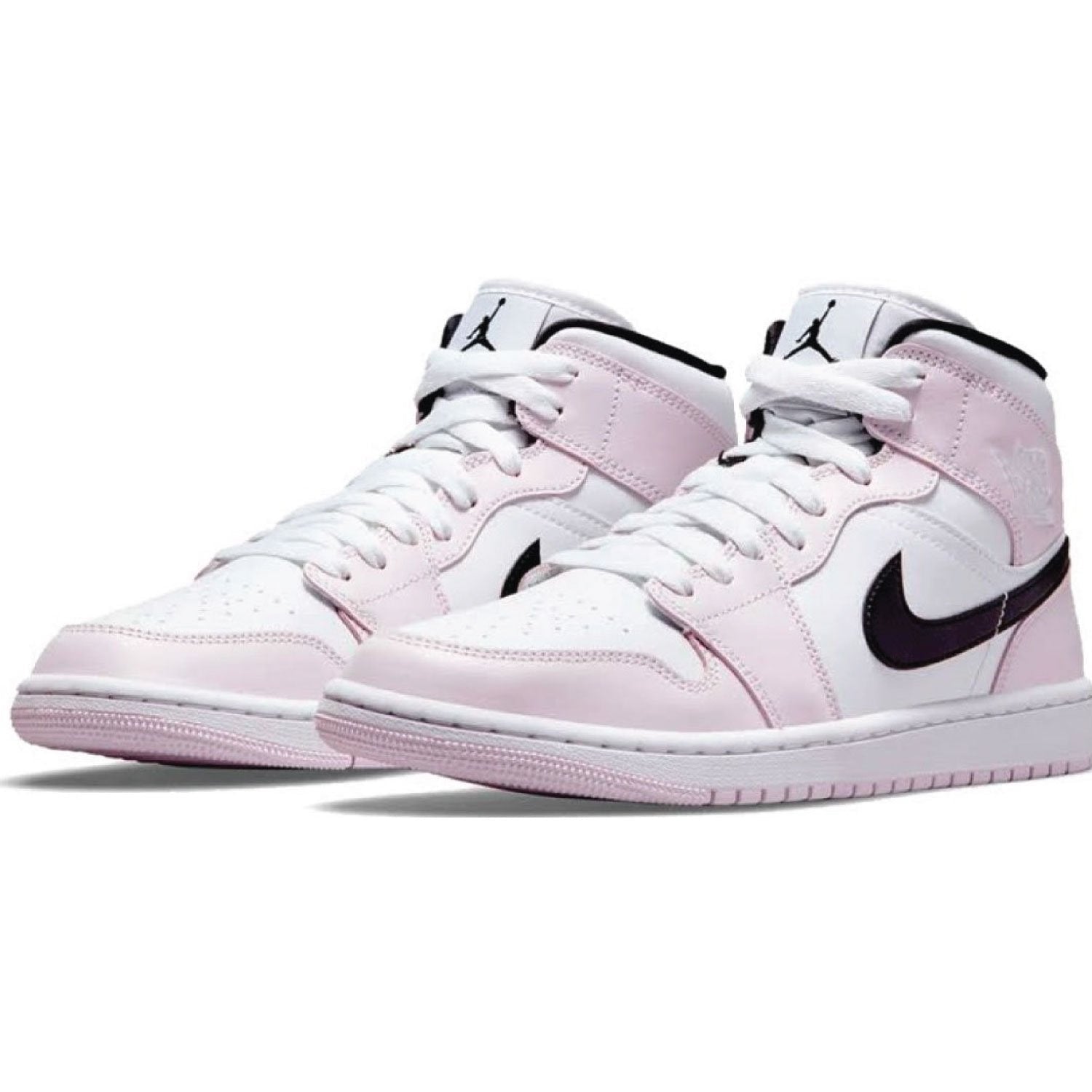 Leather sole The Women’s Air Jordan 1 Mid “Barely Rose” is a women’s exclusive version of Michael Jordan’s first signature shoe in a soothing colorway The Jordan 1 Mid is a popular model for women, and it’s easy to see why that is based on the appealing color block of the “Barely Rose" Jordan Brand contrasts the overlay panels in Barely Rose with a white leather base Branding wise, a black leather Swoosh appears on both sides and a white “Wings” logo can be found on the collar Additionally, a black Jumpman graces the branding tag stitched onto the top of the white nylon tongue. A black liner and white shoelaces provide additional detailing The Women’s Air Jordan 1 Mid “Barely Rose” is a women’s exclusive version of Michael Jordan’s first signature shoe in a soothing colorway.