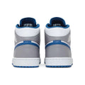 Embrace a classic look with the Jordan 1 Mid 'Cement True Blue.' This sneaker features a crisp white upper with true blue and cement grey accents. The mid-top design ensures support and comfort, making it a perfect addition to any sneaker collection.