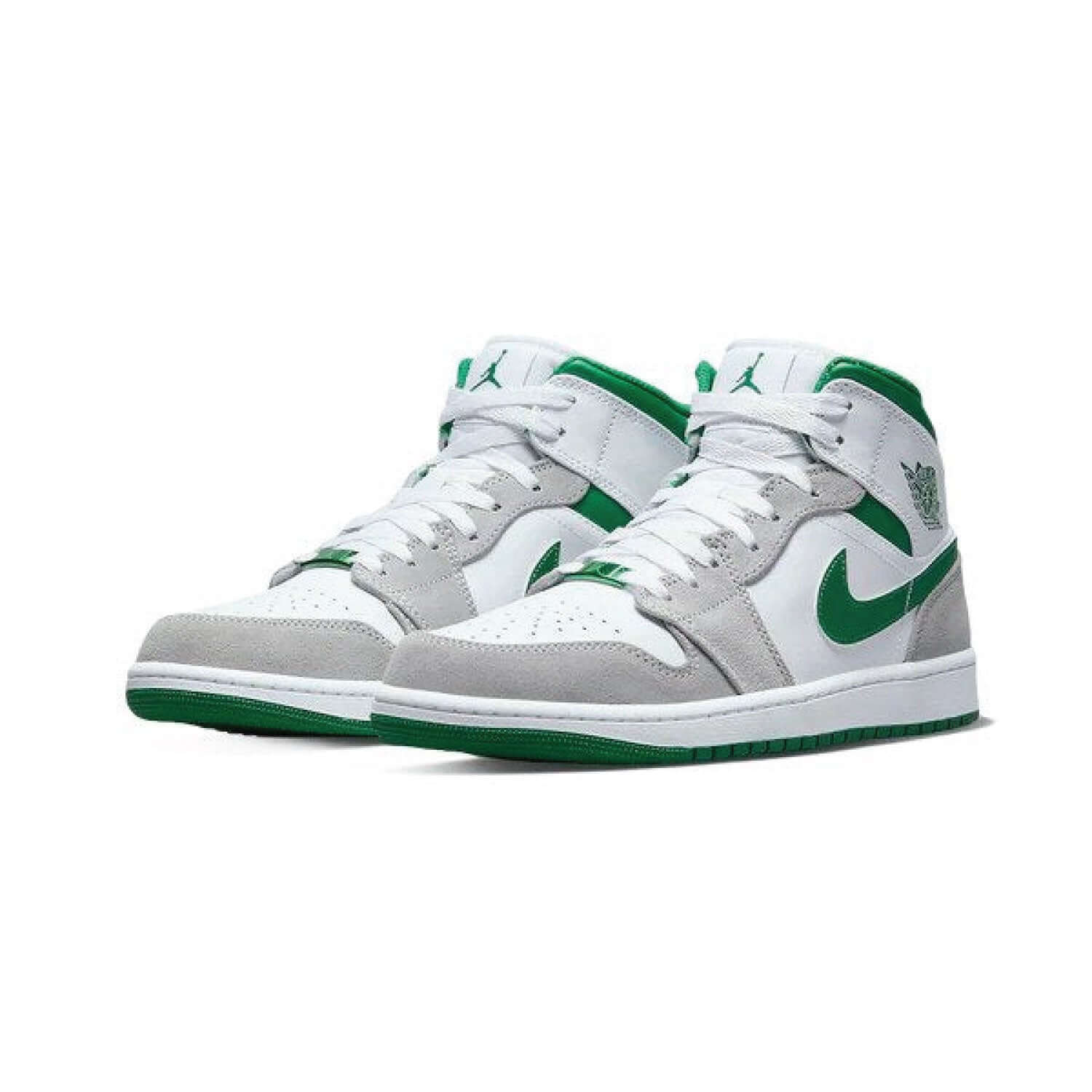 Elevate your sneaker game with the Jordan 1 Mid Gray Green, which combines a glossy gray colourway with vibrant green for a fresh and vibrant look. This iconic sneaker is perfect for sneaker lovers and those looking for a comfortable shoe. Made with premium materials, the Green Jordan is durable and provides a comfortable fit, making it a wardrobe essential.