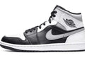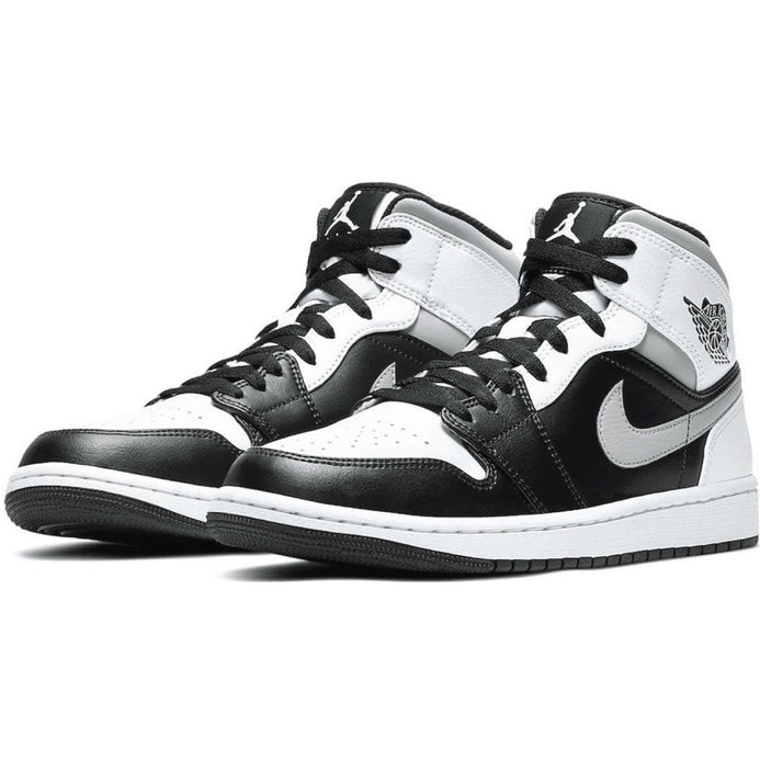 - A super crisp colour combination of white and grey smooth leather dress the upper of the Air Jordan 1 Mid White Shadow, with contrast added through the addition of the black tongue and signature lateral swoosh. The red wings and jumpman logo embellishment added to the heel and tongue round off this beautifully versatile sneaker. The Air Jordan 1 Mid ‘White Shadow’ are easily one of the cleanest and coveted additions to your Jordan collection.