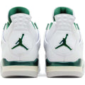 The Jordan 4 Retro Oxidized Green is a sophisticated and stylish take on the classic Jordan 4 silhouette, blending premium materials with a unique colourway. This model features a high-quality white leather upper, providing a clean and versatile foundation. The shoe is accented with striking oxidized green details on the eyelets, heel tab, and outsole, offering a refreshing twist on the traditional design. Black accents on the midsole, tongue, and laces add a bold contrast, enhancing the overall aesthetic.