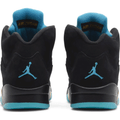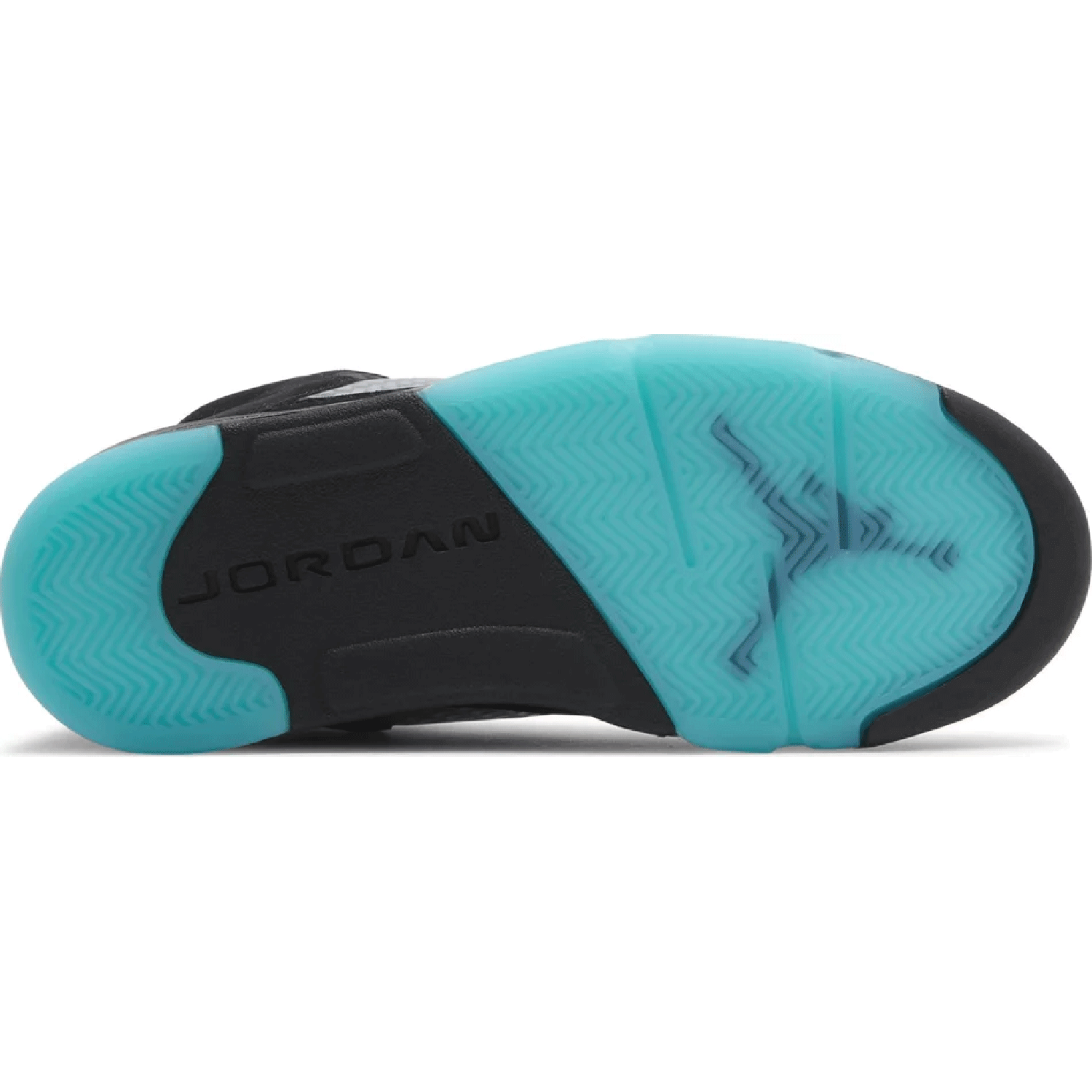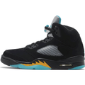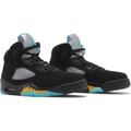 The Air Jordan 5 Retro ‘Aqua’ showcases a distinctive color scheme that recalls an AJ5 PE made for Chris Paul during his time with the New Orleans Hornets. The legacy silhouette makes use of a black nubuck upper with translucent quarter-panel netting for improved breathability. A bright teal Jumpman decorates the back heel and silver reflective tongue. Anchoring the sneaker is a black polyurethane midsole, featuring speckled yellow shark-tooth detailing and visible Air-sole cushioning in the heel. Finished in a vibrant turquoise hue, a translucent rubber outsole yields durable traction.