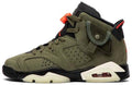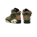 Supplied by a premier sneaker marketplace dealing with unworn, already sold out, in demand rarities. The Travis Scott x Air Jordan 6 marks the third time the world famous rapper and Jordan Brand have partnered on an Air Jordan. Scott revisits earth tones as the central theme of the “Cactus Jack” Air Jordan 6, just as he did with his first collaboration on both the high and low top Air Jordan 1 models. The upper part of the sneaker is comprised of an olive-based nubuck material with black detailing and contrasting red accents. An added stash pouch on the collar is reminiscent of the kinds of pockets that can be found on the side of cargo pants and military gear. A black mudguard and Sail midsole with glow-in-the-dark translucent outsole round of the rest of the impressive design. 3M detailing is displayed on the red Air and Cactus Jack branding. Release date: September 14th, 2019.