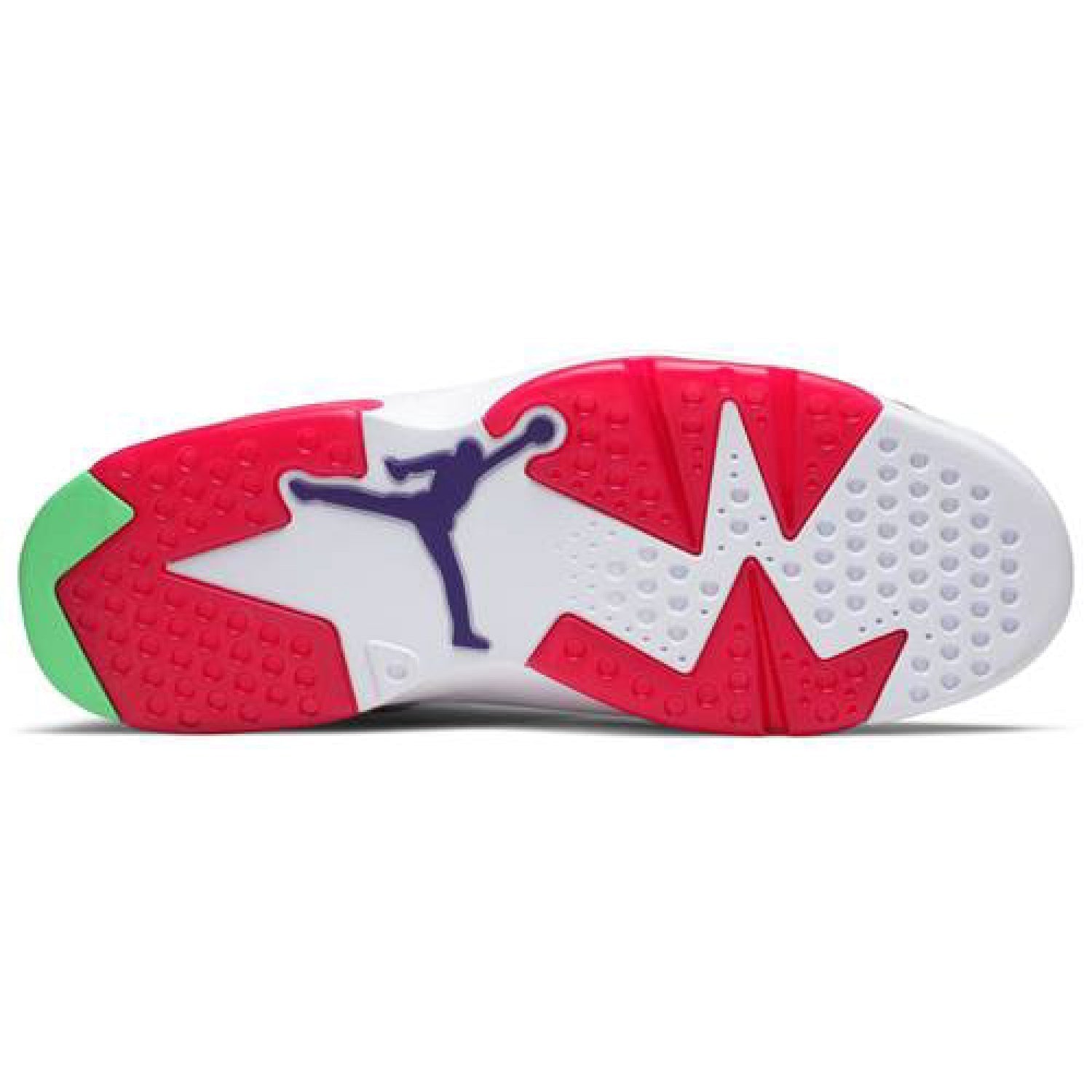 The Nike Air Jordan 6 Retro ' 'Hare'' is imbued with forward-thinking innovation for a street lifestyle. Introduced in April 2014, this 'Hare'' edition mimics movement with a radiating wave pattern molded into the mesh upper. Tonal laces, synthetic frames and a pull tab amplify the look. A Swoosh-branded mudguard and a bulging, translucent Air unit deliver a sleek, cushy base.