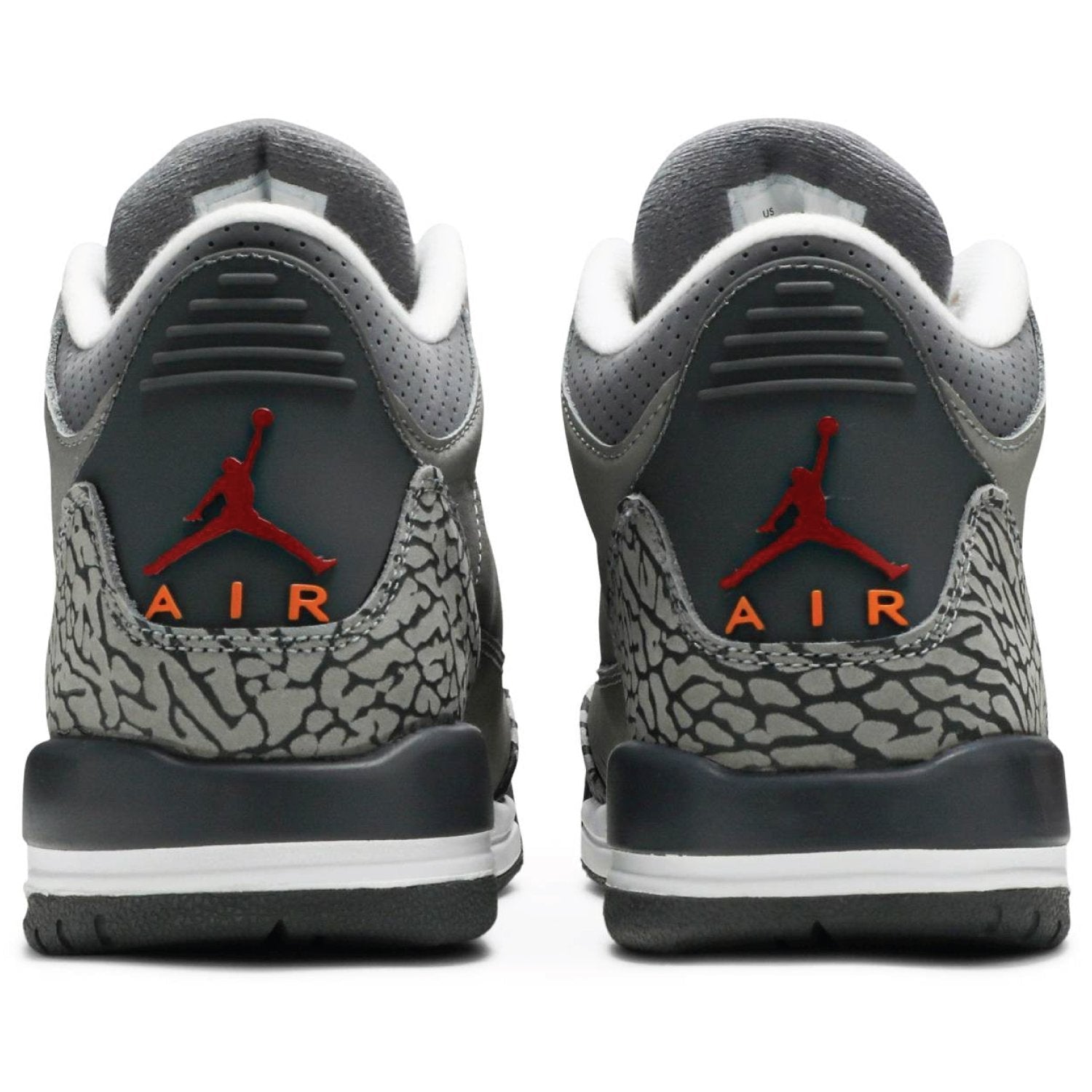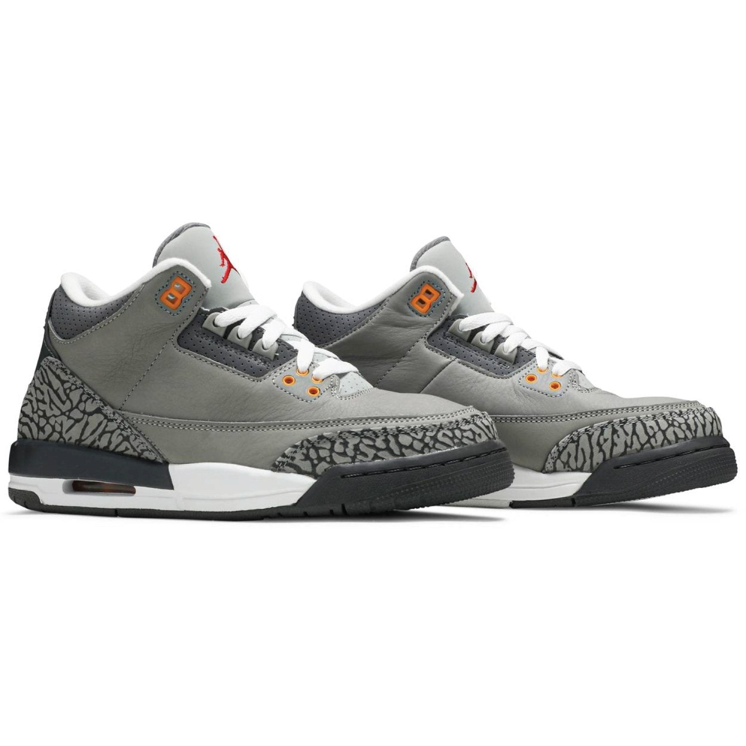 - Developed for big kids, this 2021 reissue of the Air Jordan 3 Retro GS ‘Cool Grey’ brings back the fan-favourite 2007 colorway for the first time ever. The mid-top is clad in a neutral grey leather upper, complete with tonal elephant-print overlays at the toe and heel. Subtle pops of Orange Peel and Sport Red land on the sneaker’s identifying details, including molded eyelets, visible Air sole cushioning and Jumpman branding hits at the tongue and heel.