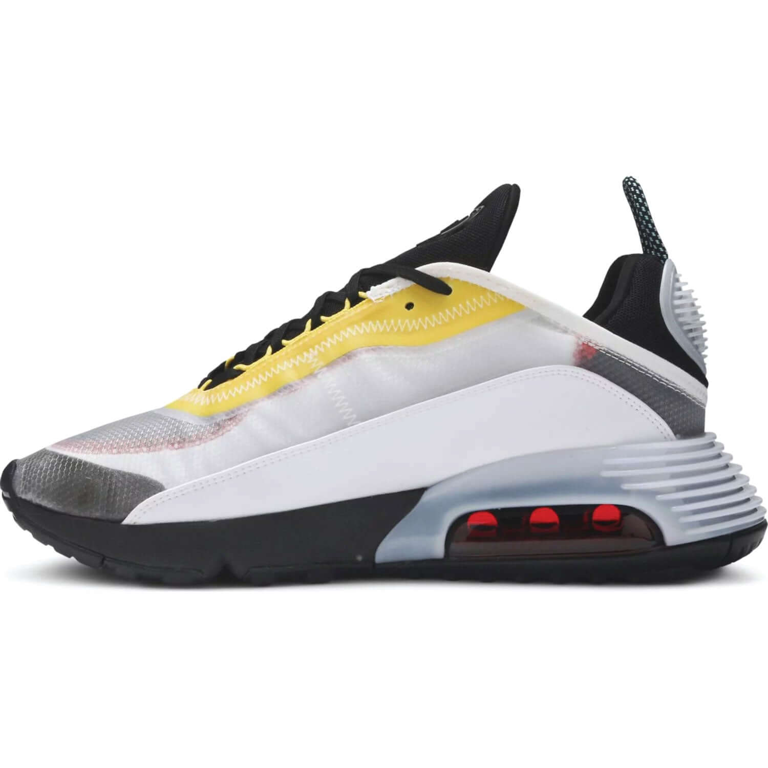 The Air Max 2090 ‘Speed Yellow Aqua’ features a contemporary build that carries on the basic DNA of the Air Max 90. The translucent textile upper offers a comfortable fit, thanks to internal bootie construction and a padded heel. Heritage details function as explicit callbacks to Tinker Hatfield’s original design, including a synthetic leather mudguard, molded heel piece, and a visible Max Air unit encased in a ribbed TPU frame.