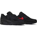 Featuring clean lines and timeless design, the Air Max 90 from is available in a variation of colorways & styles. The shapes and patterns are constructed to convey speed, but they remain aesthetically appealing in bold color combinations. The 30-year-old Air Max 90 silhouette gets an exotic outfit in the "Infrared Blend" iteration. The stealthy all-black upper features pony hair, ostrich, and crocodile skin, while a striking red Swoosh appears on the medial side. Underfoot, the sole unit is dressed in black to go with the aesthetic.