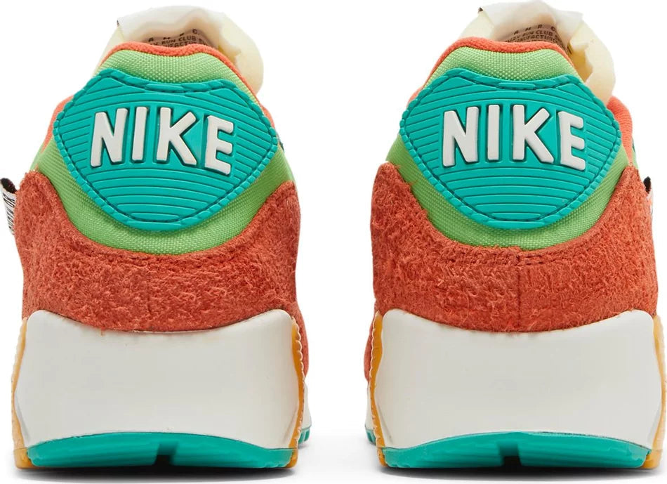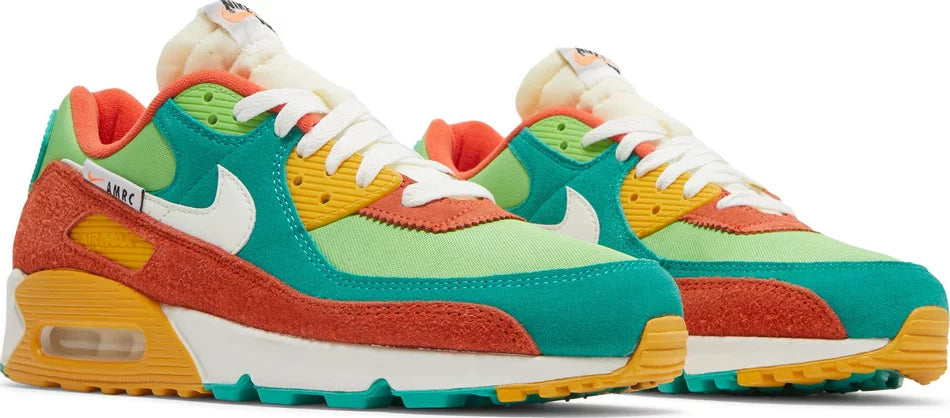 The Nike Air Max 90 SE 'Running Club - Roma Green' is imbued with forward-thinking innovation for a street lifestyle. Introduced in April 2019, this 'Running Club - Roma Green' edition mimics movement with a radiating wave pattern molded into the mesh upper. Tonal laces, synthetic frames and a pull tab amplify the look. A Swoosh-branded mudguard and a bulging, translucent Air unit deliver a sleek, cushy base.