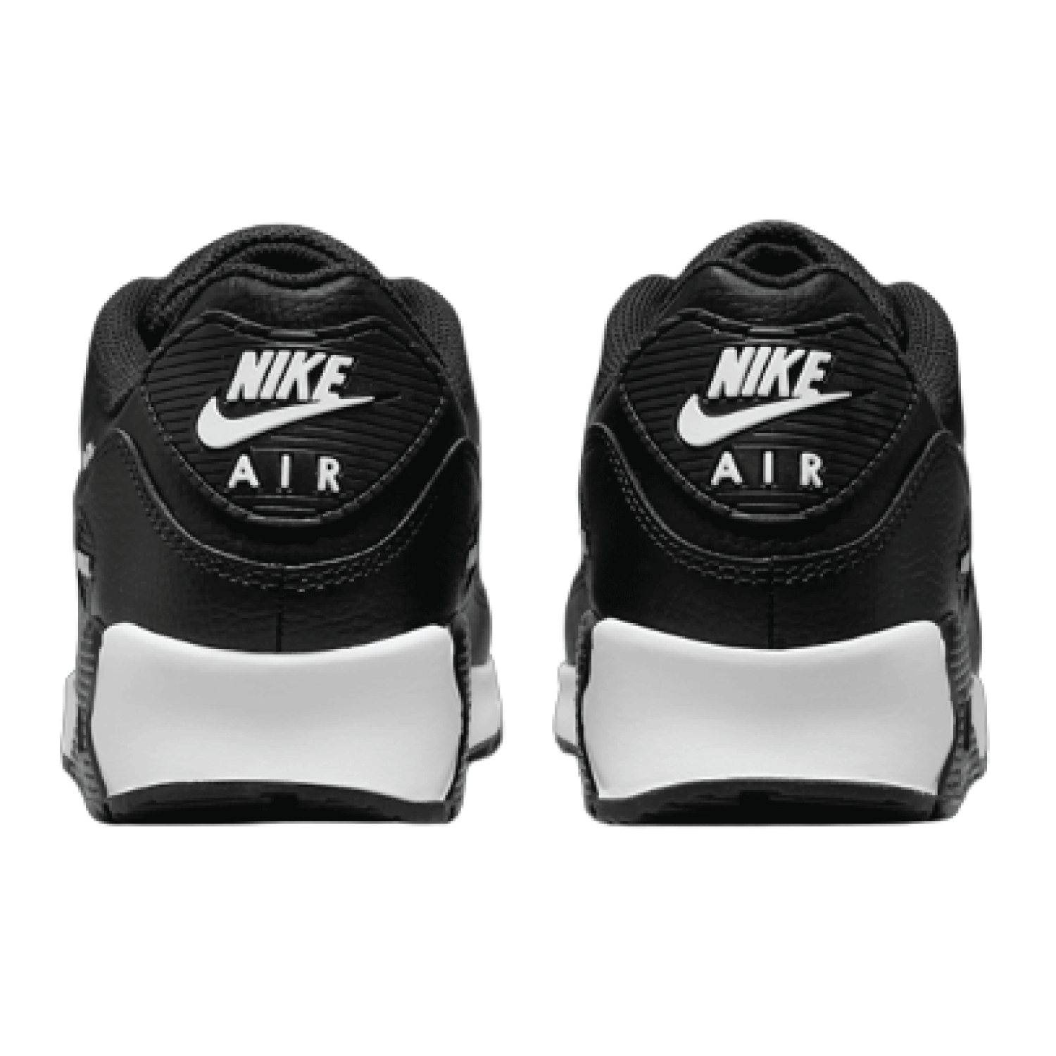This offering of the Air Max 90 features an all-Black upper constructed in a mix of leather and mesh materials. White branding and midsole highlighted with two spray-painted brush Swooshes on the sides complete the design.