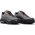 At a glance, the colorway is essentially the same as its previously unveiled counterpart, with all the bold touches taking up space along a greyscale frame. At its lowermost points, dark shades lead in both suede and leather, while the mesh and corduroy above opt for lighter variations of the same neutral. Eye stays, then, individually color with a louder palette, starting red and then finishing with an equally saturated yellow. Alongside some additional embroidered checks, the pair plays with its branding elsewhere: the tongue emblem appears VHS-esque in its mosaic, while the insole covers with many a past Air Max insignia.