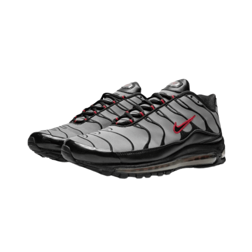 The Air Max Plus 97 SL 'Cool Grey Black' is imbued with forward-thinking innovation for a street lifestyle. Introduced in April 2019, this 'Cool Grey Black' edition mimics movement with a radiating wave pattern molded into the mesh upper. Tonal laces, synthetic frames and a pull tab amplify the look. A Swoosh-branded mudguard and a bulging, translucent Air unit deliver a sleek, cushy base.
