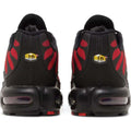 The Air Max Plus 'Bred Reflective' is a striking sneaker that merges classic colorways with modern enhancements. The shoe features a bold black and red (Bred) upper, accented with reflective materials that catch the light for a dynamic look. The signature Tuned Air cushioning system ensures maximum comfort and support, making it ideal for both everyday wear and athletic performance. With its eye-catching design and advanced technology, the Air Max Plus 'Bred Reflective' stands out as a versatile and stylish addition to any sneaker collection.
