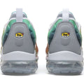 The Air VaporMax Plus ‘Retuned Air’ references the alternate name for the Air Max Plus, the TN (short for Tuned Air). While the model is mostly known for its unique upper, highlighted by gradient coloring and TPU overlays, it also offers a more stable Max Air platform. Both aspects of the Air Max Plus are radically overhauled in this hybrid model, which showcases a bright prism of colors on the molded synthetic upper and VaporMax tooling underfoot.