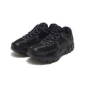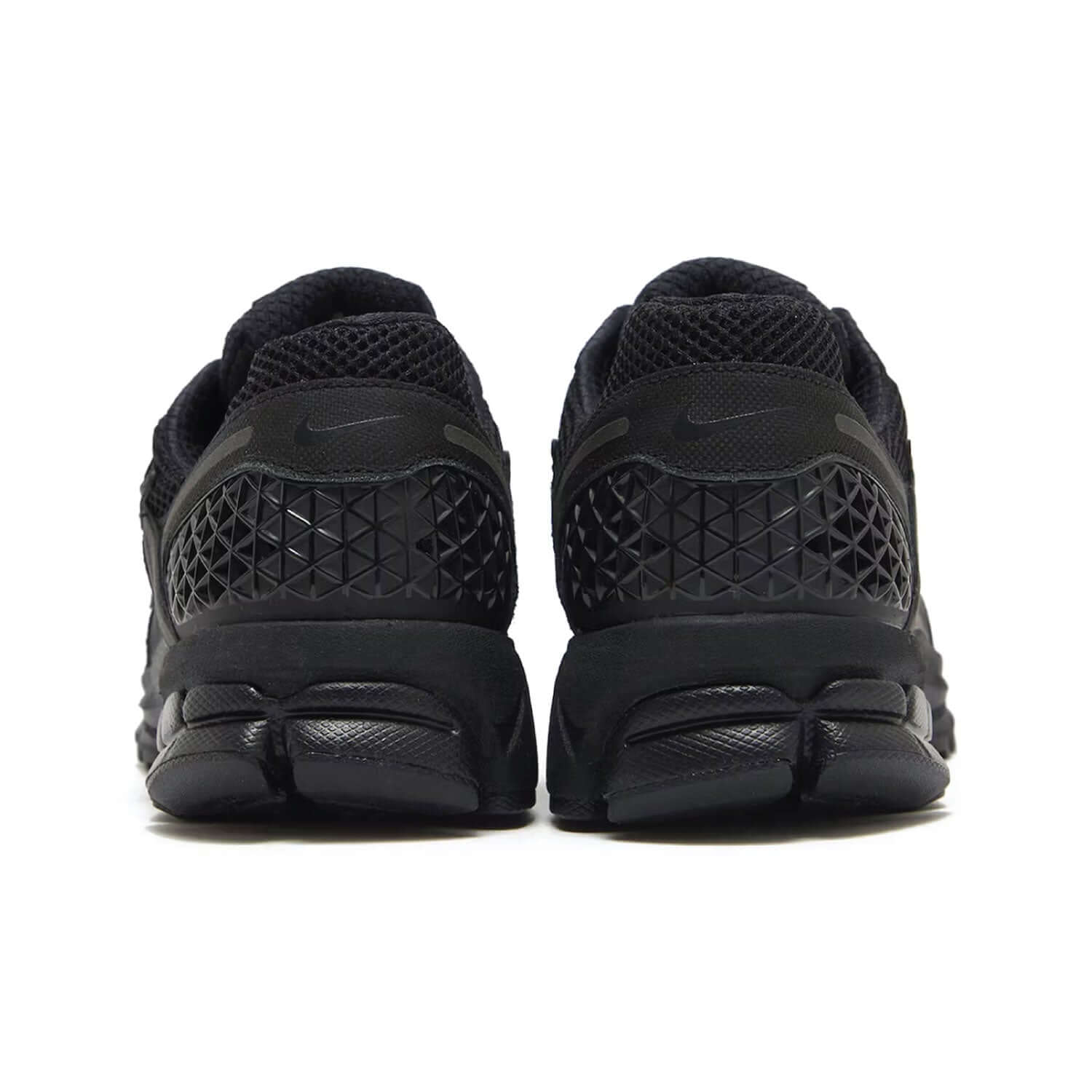 The Nike Zoom Vomero 5 'Supersonic' is an all-black sneaker with Bill Bowerman motifs in white on the insoles. It features an open mesh base, leather overlays, and signature plastic material on the panel and heel counter. The Zoom Air cushioning and 3M reflective accents provide comfort and style. This shoe is perfect for everyday wear, combining performance and aesthetics. Its lightweight construction and durable materials ensure all-day comfort, whether you're on the track or the streets.