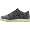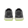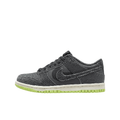 The Dunk Low SE ‘ Cauldron’ celebrates Halloween with an aged aesthetic, unique details, and a vibrant pop of color underfoot. A dark grey finish is executed on the upper, featuring a smooth leather base with tonal cracked leather overlays and a matching signature Swoosh. Reflective accents include a ‘shadow’ Swoosh on the lateral side and a Nike wordmark on the back heel. The sneaker is mounted on an off-white midsole, supported by a lightly speckled Scream Green rubber outsole.