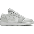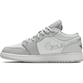 The Jordan 1 Low SE GS “Grey Camo Swoosh” adds yet another clean design of Michael Jordan’s first signature shoe for kids in the popular low-top silhouette. Keeping a simple aesthetic, the “Grey Camo Swoosh” features buttery light grey tumbled leather overlays on the forefoot, eyelets, and heel. The look is contrasted by white mesh on the mid-panel and perforated toe. An ambiguous grey camo pattern inside of the Swoosh branding on either side balances the neutral based design. Final details include a black embroidered “Wings” logo on the heel, a black Jumpman on the nylon tongue, and black “23” branding on the lace overlay.