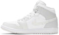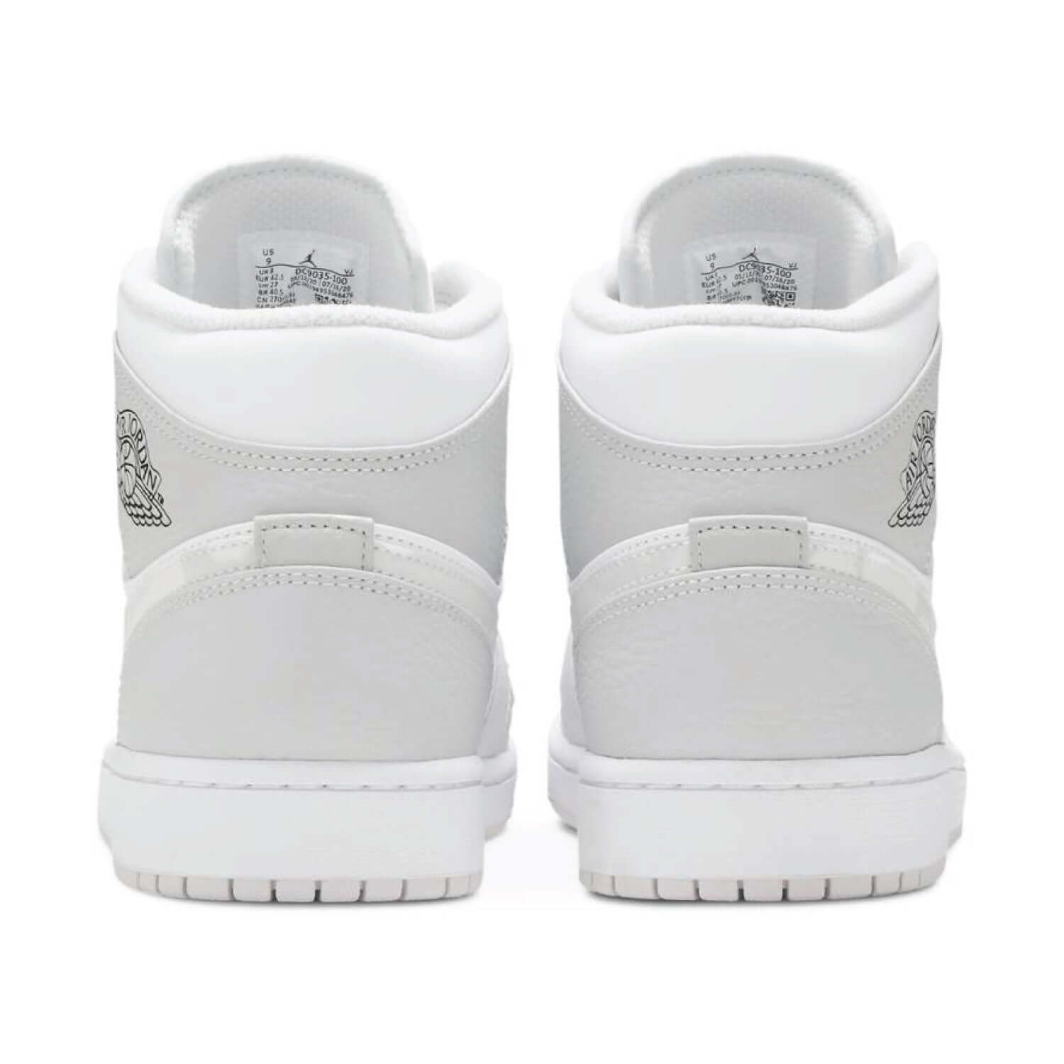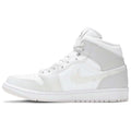 The Jordan 1 Mid Gray Camo gives a cool, fresh look. Suitable for sneaker lovers. These mid-top sneakers feature a sleek grey leather upper with distinctive camo overlays, combining classic Jordan style with a modern twist. A signature Air-Sole unit in the heel provides cushioning. superior impact comfort for everyday wear and sports activities.