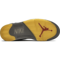 The Off-White x Air Jordan 5 SP 'Muslin' delivers Virgil Abloh’s stylized take on the retro silhouette. The faded black textile upper blends traditional details, including a silver reflective tongue and embroidered Air branding, with Virgil’s signature text on the laces and medial-side quarter panel. A pre-yellowed translucent rubber outsole adds to the sneaker’s vintage aesthetic.