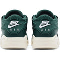 The Women's Air Jordan 4 RM 'Oxidized Green' reimagines the original AJ4 with a modern, streamlined profile. A dark emerald hue floods the mixed-material upper, built with a combination of mesh, leather and suede. Jumpman branding appears on the tongue tag, while a raised Nike Air logo adorns the TPU heel cage. The sneaker sits atop an off-white polyurethane midsole, fitted with visible Air-sole cushioning and supported by a color-matched rubber outsole.