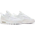 The Wmns Air Max 90 Futura 'Triple White' gives the Tinker Hatfield-designed model a new lease of life with this Triple White patchwork construction. Coined the Futura , it features a busy mixed fabrication construction with panels fused together to give a larger-than-life feel that jumps off your feet. A sustainably crafted Grind outsole sits underfoot, with alternate ‘air’ and Swoosh branding applied off-centre on the back heels, making a refreshing change.