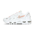Ostensibly premium to women, the scheme starts with a simple Triple White base. The neutral dresses the entirety of the tooling as well as the leather overlays. And though it may also take the lead along the mesh base, it has a bit of help from a few “Pure Platinum” accents. The Swoosh along the profile and strip atop the tongue are doubly as interesting, as both pair the aforementioned grey with a louder “Bright Mango.” What’s more, the latter also hues the tongue’s Air Max branding.