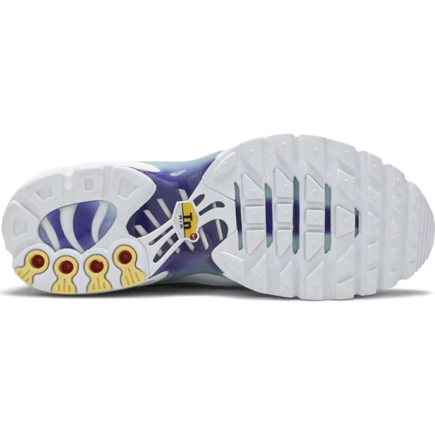 Tuned Air—debuted on the Air Max Plus in 1998—further calibrated the brand's Air technology by dividing the underfoot and targeting hemispheres with graduated air pressures. The Wmns Air Max Plus TN SE 'Bleached Aqua' updates the style with a striking gradient. This special edition women's sneaker casts the welded caging, mudguard, foam midsole and rubber outsole in white, while the midfoot shank and visible Tuned Air units pick up tones from the upper.