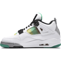 The women’s Air Jordan 4 Retro ‘Rasta’ showcases a gradient blend of red, yellow and green hues on the netting that covers the quarter panel and throat. The rest of the upper is constructed from white tumbled leather, contrasted by black hits on the eyelets, laces and woven tongue tag. A speckled grey finish is applied to the midsole and heel panel, the latter embellished with a Jumpman logo hit. A two-tone green and black outsole provides durable traction underfoot.