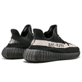The Yeezy Boost 350 V2 Black-White is a sleek and stylish sneaker that features a black and white colorway with a prime knit upper and Boost cushioning. The Black-White colorway, as the name suggests, features a primarily black upper with white accents. The upper is constructed using Adidas' Primeknit technology, which provides a flexible and breathable fit. The shoe's design includes a black midsole with Adidas' signature Boost technology, which offers excellent energy return and cushioning for enhanced comfort during wear. The outsole is typically made of rubber, providing durability and traction. This stripe is a recognizable element of the Yeezy Boost 350 V2 line and adds a unique touch to the overall design.